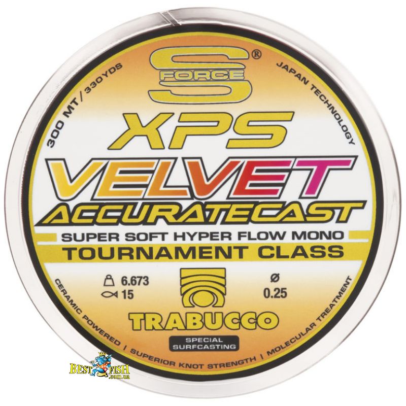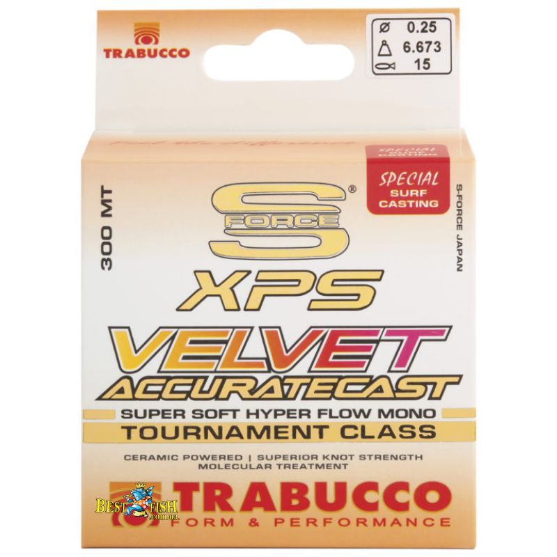 S-Force Xps Velvet Accurate Cast - спеціалізована волосінь для морської риболовлі, насамперед для серфкастингу, берегових змагань і лову з човна. Серія має гладке силіконове покриття, яке покращує ковзання, а також знижений ефект пам'яті та помірну розтяжність. Однією з практичних особливостей є багатокольорова розмітка відрізками, що полегшує контроль дистанції та положення оснастки. Варіант з розмотуванням 300 м, діаметром 0.22 мм і розривним навантаженням 5.51 кг підійде для рибалки, який цінує повторюваність закидання, добру інформативність і витривалість волосіні в умовах піску, солоної води та постійного навантаження. Це вдалий вибір для морського лову, де точність подачі не менш важлива, ніж міцність і абразивостійкість.