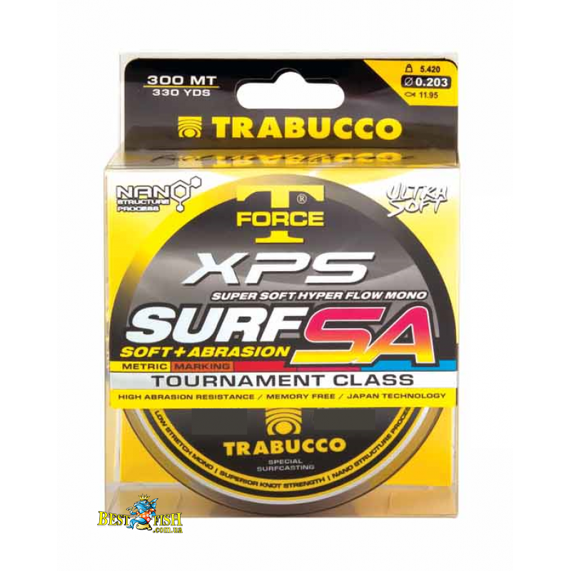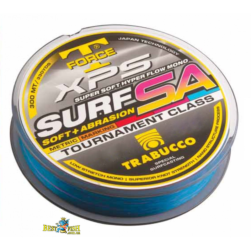 T-Force Xps Surf Sa Mark System - морська волосінь для серфкастингу, в якій особливу увагу приділено контролю дистанції та положення оснастки. Серія має багатошарову будову з покриттям, що покращує зносостійкість і роботу волосіні під навантаженням. Однією з головних переваг є маркування кольором через певні інтервали, завдяки чому рибалка може точніше відстежувати дальність і повторювати результативний закид. Варіант із довжиною 300 м, діаметром 0.25 мм та навантаженням 8.35 кг розрахований на використання як основна волосінь у серфкастингу.