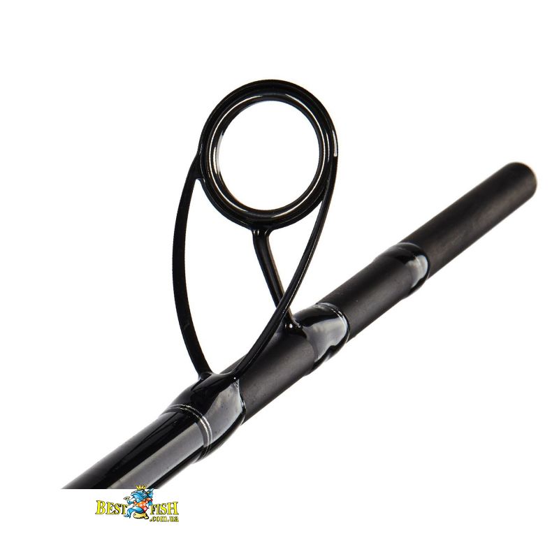 Це «Extra Heavy» інструмент для сценаріїв із сильнішою течією та важкими годівницями, де потрібні силовий закид і мінімальні паразитні коливання бланка. За карткою: робоча довжина 3,60 м, тест 80–150 г (максимум 150 г), стрій Fast, вага 268 г, транспортна довжина 1,27 м, секційність «3+3»; матеріал бланка — HMC (T36), з’єднання OVER STEEK, кільця посилені зі вставками SiC, руків’я EVA.