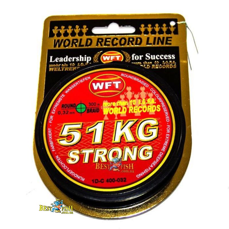 Плетеный шнур WFT KG 0,32мм (300m) 51KG, Germany. Современная плетенка имеющая непревзойденные характеристики. Этот шнур имеет круглое сечение и обеспечивает дальний заброс и высочайшую чувствительность. Высокие показатели прочности позволяют бороться на равных с крупной рыбой, износостойкий, ему не страшны проводки по острым камням, прекрасно укладывается на катушку, что важно при ловле спиннингом. Идеально подходит для всех видов ловли.