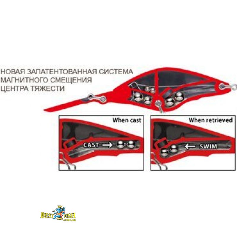 YO-ZURI F1023 Hardcore Deep Crank 60F - глибоководний кренк має ряд конструкційних особливостей. По-перше, реалістична форма корпусу, що нагадує хижакові ситого вгодованого малька. По-друге, велика ромбовидна лопать, за допомогою якої воблер швидко заглиблюється до робочого горизонту і впевнено працює на «равномерке», і Твіч. По-третє, чотири сектори на тілі, що відрізняються за структурою і квітам: луската спинка, бликуючий бік, ребристий ділянку під бічною лінією, і яскраве черевце. І, нарешті, по-четверте, реалістичні 3D очі. Однак не менш важливі елементи конструкції заховані усередині. Це 4 камери, які одночасно є системою балансування воблера. В одній з камер розмістилися два кульки з магнітом. Вони-то і складають магнітну систему далекого закидання. У двох інших - по 2 кульки. Великі видають низькі, маленькі - високі звуки, щоб привернути хижака. Четверта камера порожня. Вона забезпечує воблеру позитивну плавучість. Воблер відмінно тримає струмінь, працює по окуневі, щуку, судака, жереха, головню і сому.