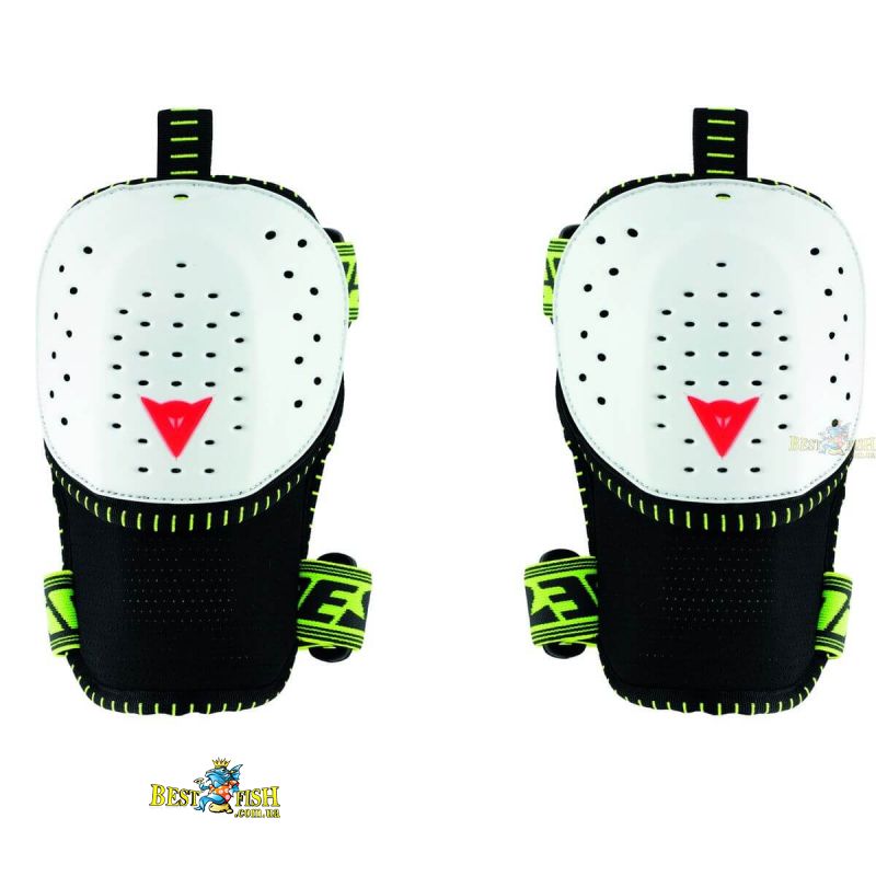 Захист ліктів виконана з легкого перфорованого поліпропілену в поєднанні з внутрішнім шаром з 3D сітки і "дихаючої" ударопоглащающімі подушкою. Вставка з ударогасящего матеріалу між двома жорсткими пластинами. Кріпиться двома еластичними липучками.