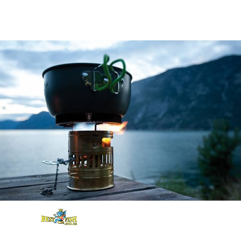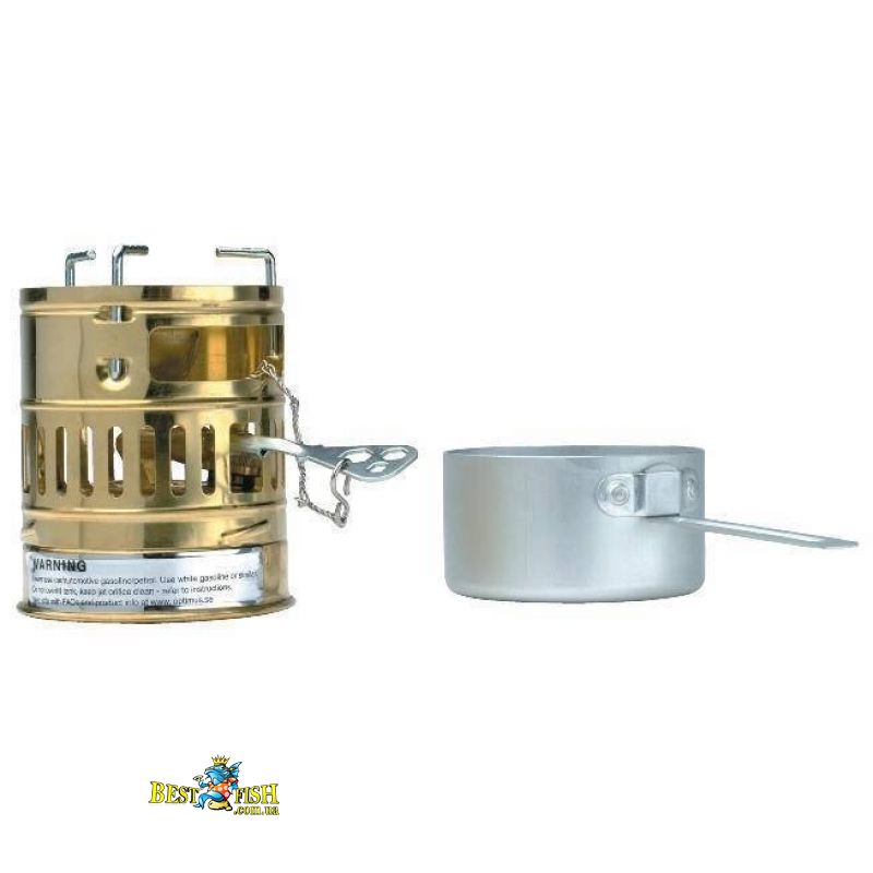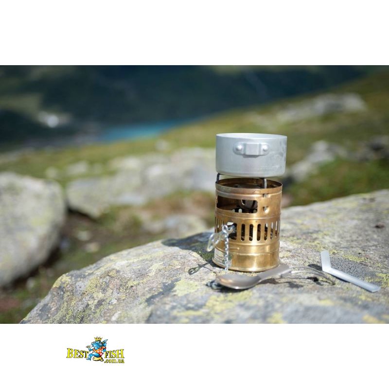 - в комплекте бензиновая горелка, латунный ветрозащитный экран, и котелок на 0,3 литра;