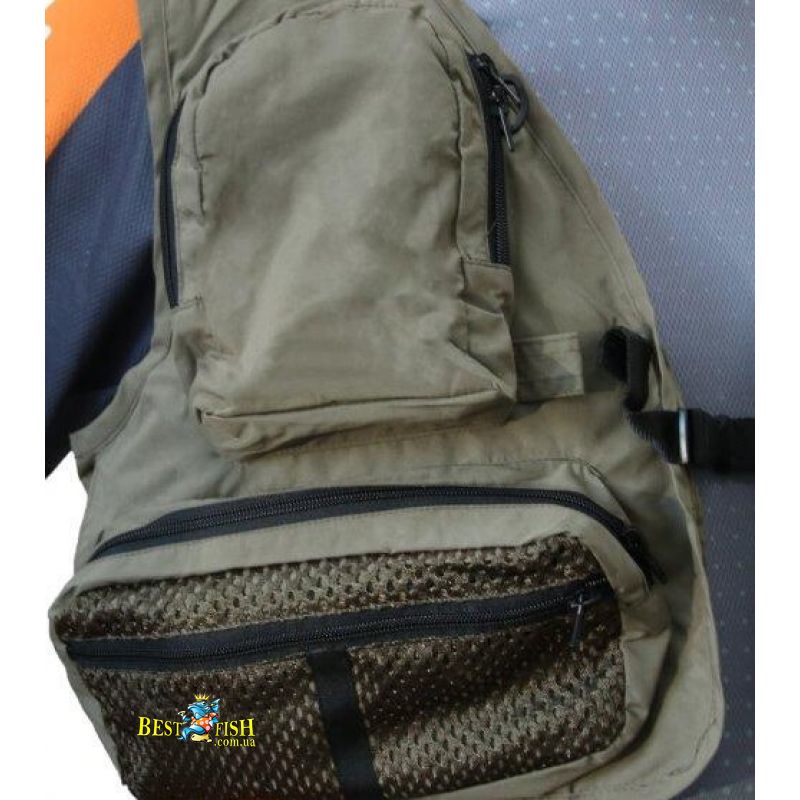 Два об'ємних нагрудних кишені з подвійною застібкою-блискавкою, всередині штучне хутро для зберігання мушок
